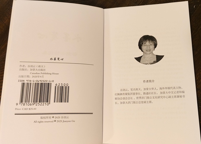 目前,《水墨笺心》已在加拿大及中国多地同步上市。该诗集的面世,不仅标志着谷剑云文学创作的重要里程碑,也为加拿大出版社在推动多元文化出版、展示中华文学魅力方面再添一项成果。