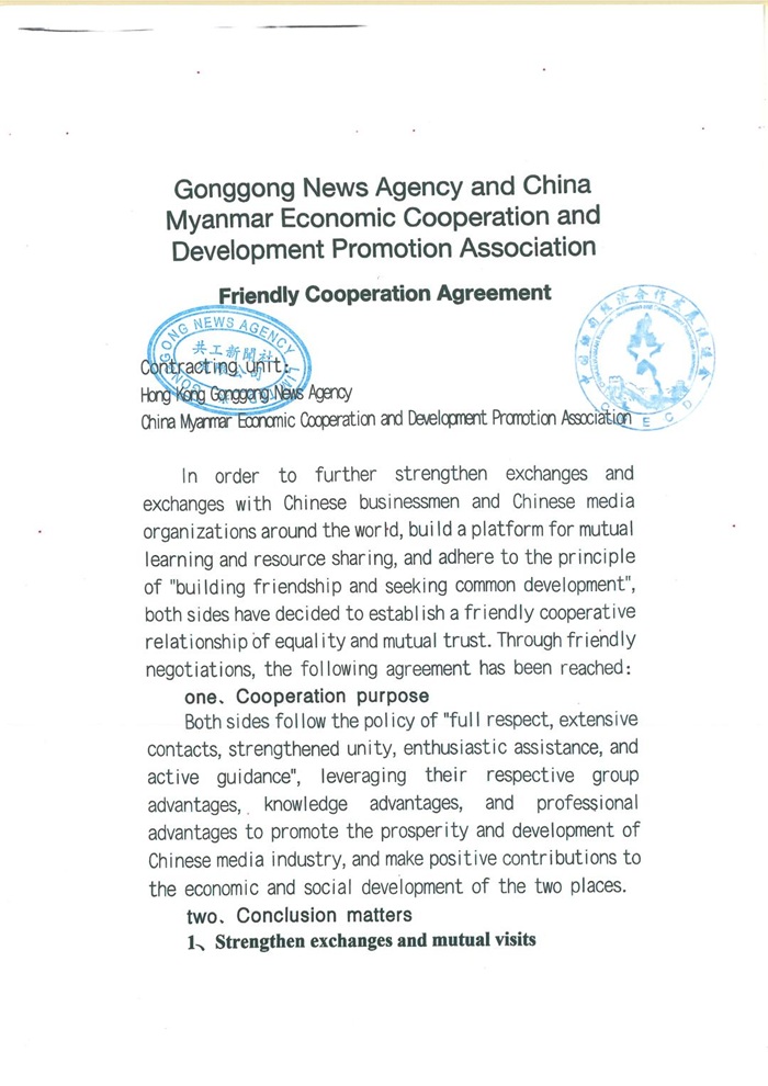 共工新闻总社与中缅经济合作发展促进会战略合作协议书截图。共工社发
