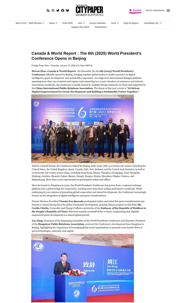 英文媒体链接:Canada & World Report : The 6th (2025) World President’s Conference Opens in Beijing